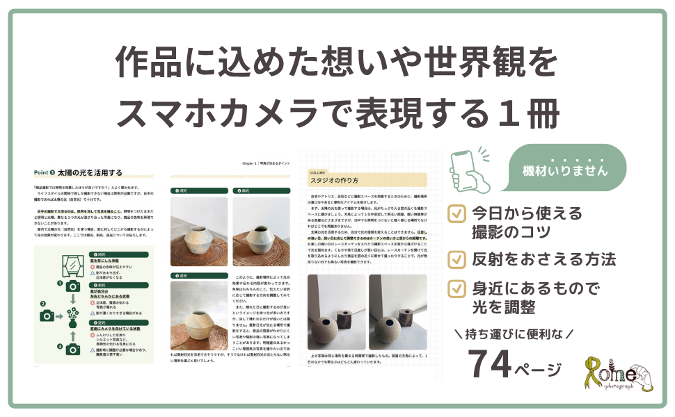 『スマホでカメラ手帖』は、ハンドメイド作品や商品の魅力を伝える撮影方法と考え方をまとめました。